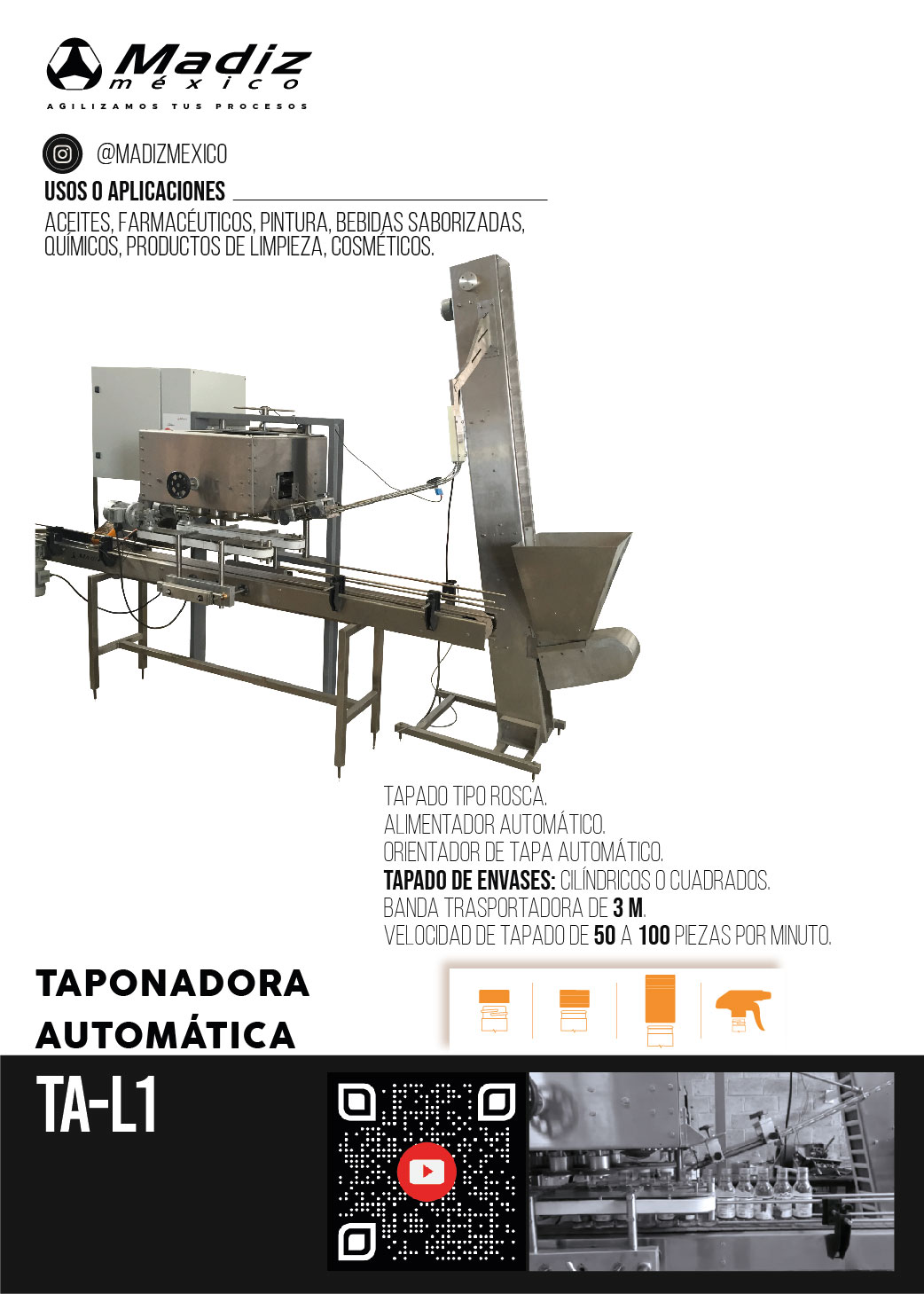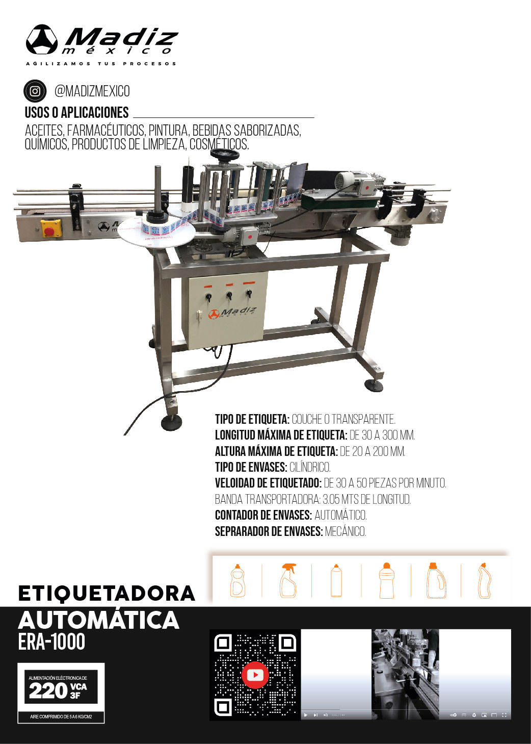 Dedicada al diseño y fabricación de maquinaria industrial. Fabricamos una amplia gama de llenadoras, etiquetadoras y equipos complementarios, adaptados a distintas necesidades del sector productivo.